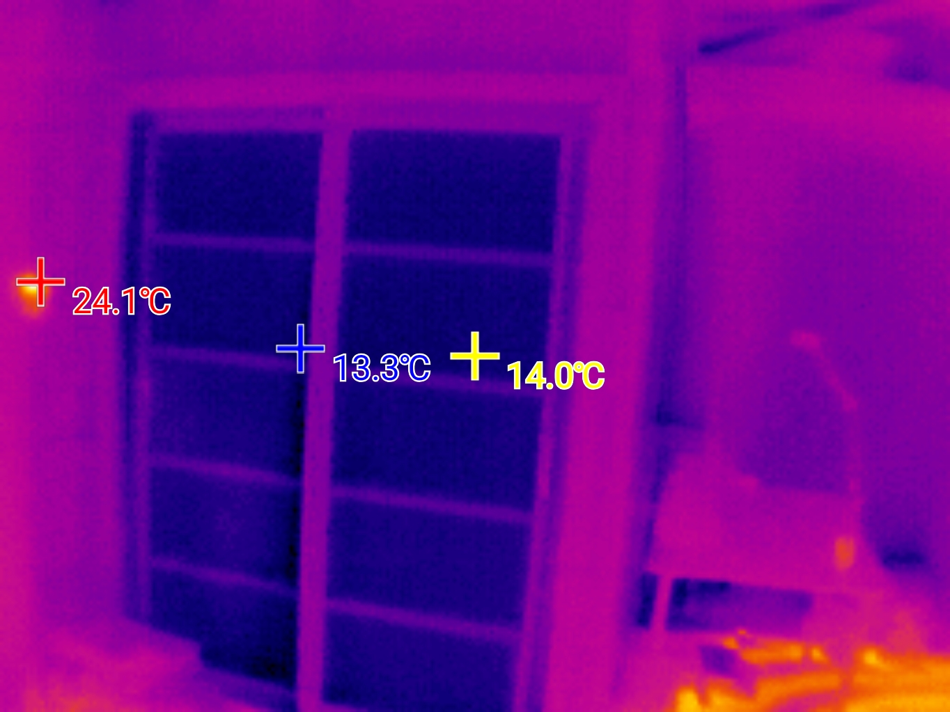 창문 틈새 막이나 문풍지로 해결이 안 되는 이유는 좌측 하단과 같은 문제입니다. 이건 완전히 단영이 터졌다고 보셔야 합니다. 모든 사람이 자신의 집이 단열이 잘 되어 있다고 이야기합니다. 실상 열화상카메라 잠깐 돌리면 이 집 어떻게 지었는지 다 알게 됩니다.