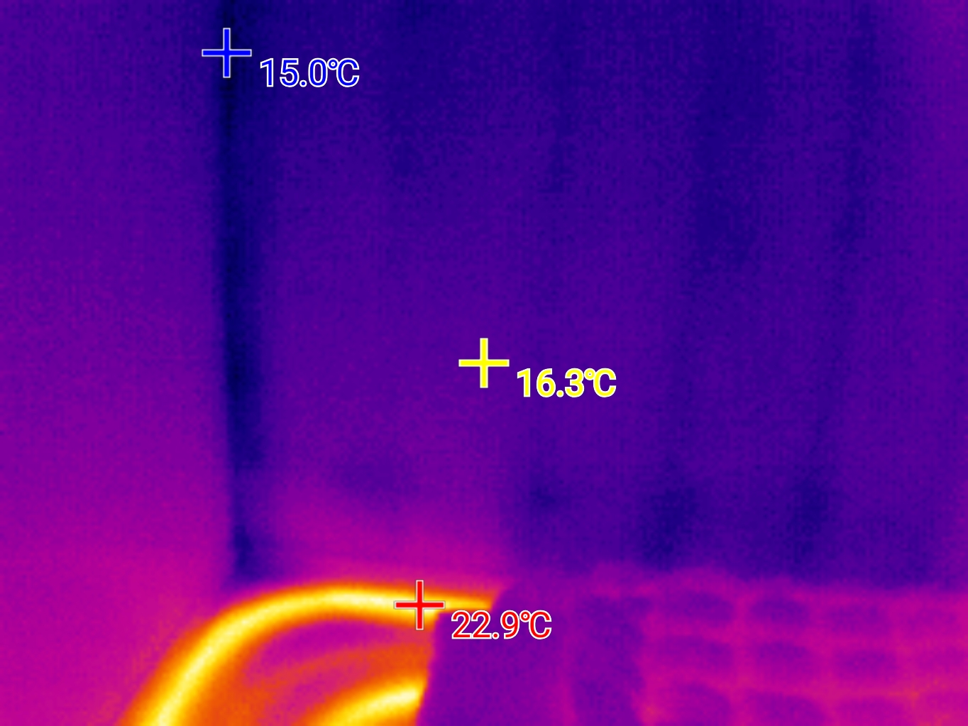 이 집은 포기했습니다. 아마 잡으려면 재시공이 많이 들어가야 합니다. 모서리마다 우레탄 단열이 안되어 있습니다. 보통 단열재를 그냥 은박 테이프로 붙이면 이러한 현상이 나옵니다. 곰팡이의 원인이 되기도 하고요. 사실 시공 때 50만 원 100만 원 더 지불해서 꼼꼼히 하면 난방비로 2-3년이면 회수됩니다. 그리고 따뜻하게 지내고요.