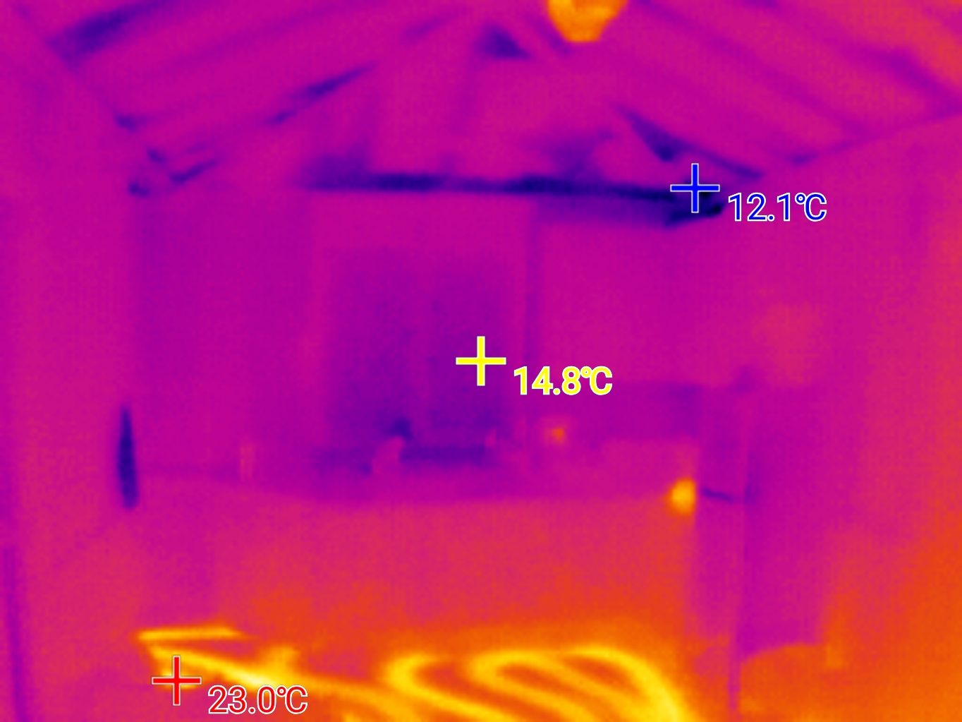 화목난로 연통구멍 입니다. 물론 누에는 안보입니다. 마감을 해 놓았으니.. 그런데 아무것도 없습니다. 우레탄을 쏘든 단열재를 넣던 해야 합니다. 눈에는 안 보이지만 열화상카메라에는 다 보입니다. 그리고 이 주택은 청장도 문제가 심각합니다. 정말 약주 거하게 드시고 지은 집입니다. 그리고 분명 집주인은 원가 절감을 생각했을 거고 모르면서 아는 척했을 겁니다. 3박자가 맞으면 집이 이렇게 됩니다. 원가절감 / 시공자의 약주 거하게 / 그리고 항상 문제는 집주인입니다. 자신이 어떠한 어마 무시한 일을 저지르고 있는지 모르면서 주둥이 파이터를 합니다. 바닥 보세요. 저것이 과연 정상적인 정신 상태로 시공한 바닥인지.