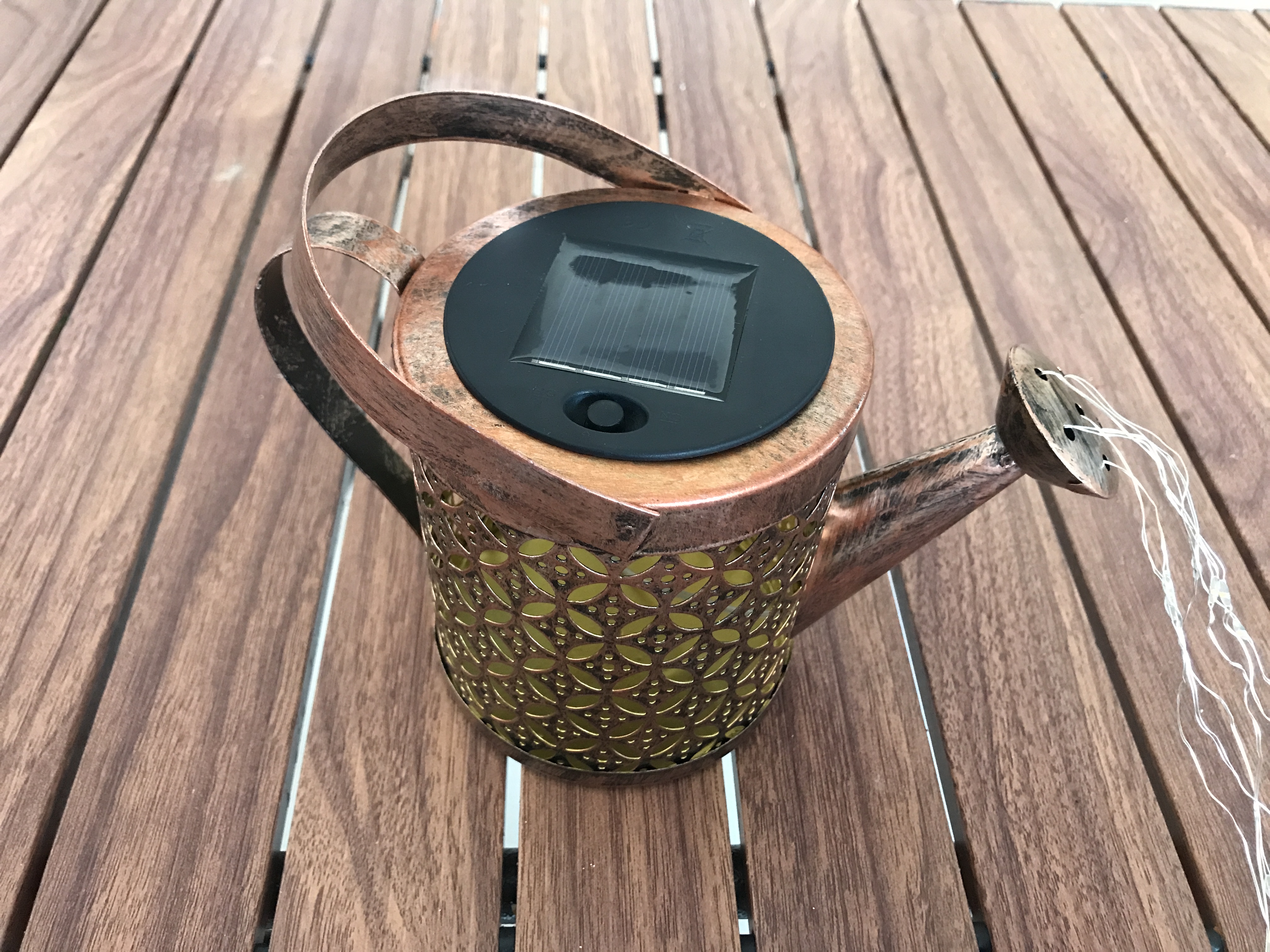 제품이 여러가지 입니다. 잘 골라야 합니다. 일단 설치는 태양만 잘 들면 됩니다. Tip은 남남서 25도 정도... 방향으로 설치 그런데 이런 거 따지면 힘들어요. 그냥 남쪽에 설치한다고 생각하시면 됩니다. 낮에 보면 태양광 주전자 아주 예쁘지 않아요. 앤틱스럽게 처리는 했지만 그냥.. 음. 먼가 있군 이 정도. 밤에는.. 굿...