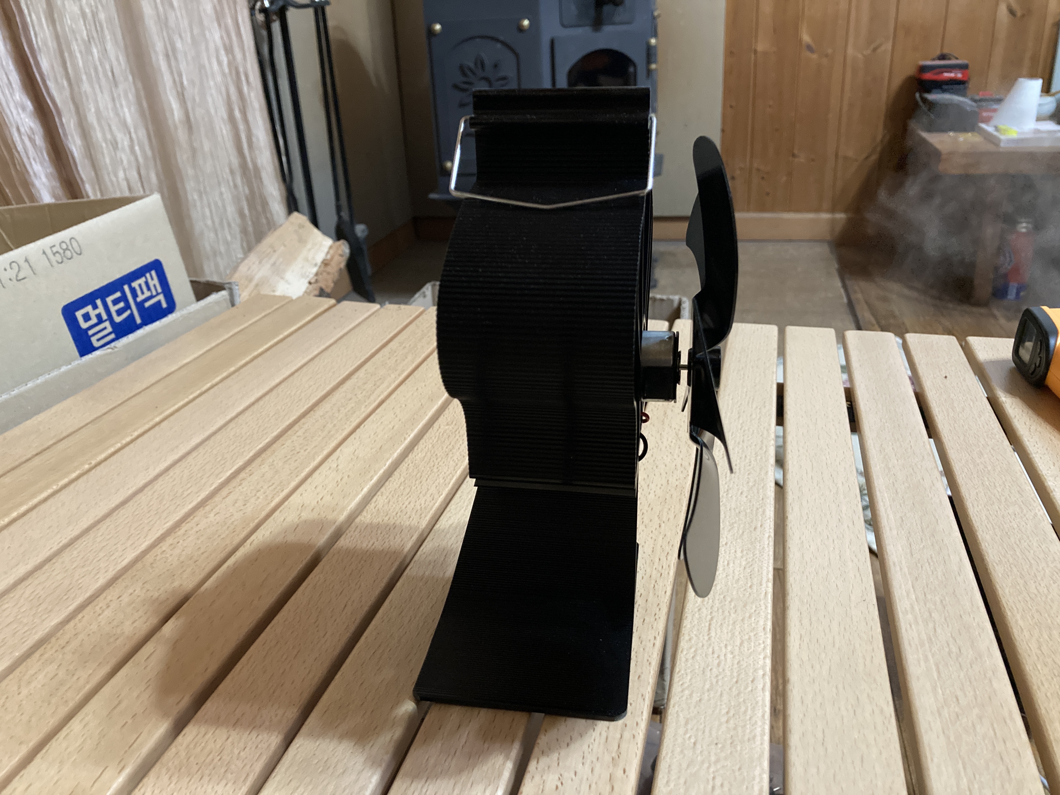 심심하면 한 번씩 위치를 변경해 주는 무동력 TEF입니다. 난로 연통 보이시죠.. 올해 3번인가 털었습니다. 여긴 화목난로 없으면 힘듭니다. 심지어 전기난로도 동시에 켜기도 하고요. 정말 무소음에 가까운 정숙성은 마음에 듭니다. 그리고 어느 정도 안전합니다. 물론 손가락을 넣으면 안 됩니다. 그러나 크게 지장은 없습니다. 저도 가끔 드르륵하고 옷이나 손가락 또는 옆에 연통이 닿아도 문제가 없었습니다.