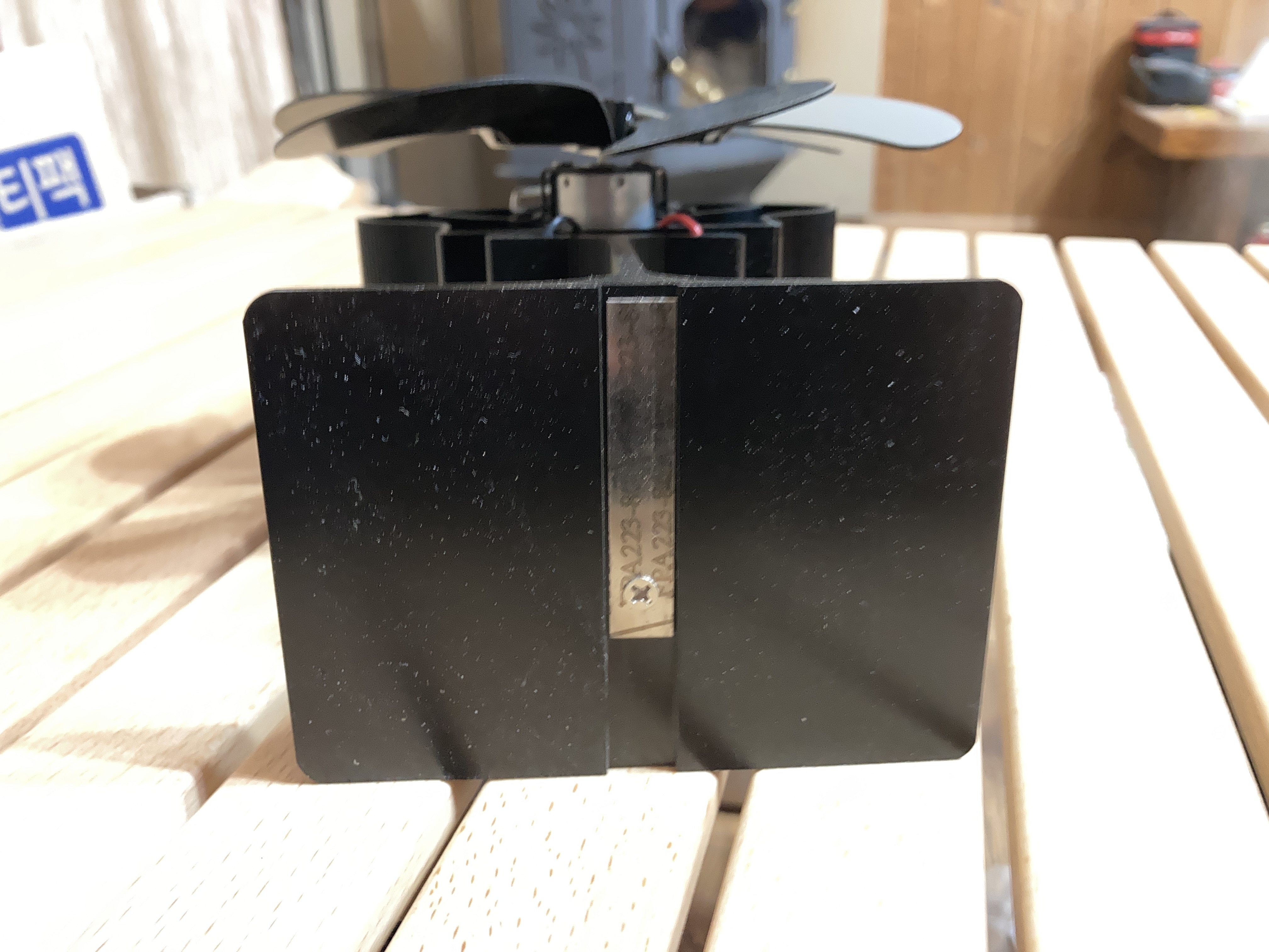 구조는 너무나 간단한 난로팬입니다. 심지어 스위치도 없습니다. 그래서 고장도 없습니다. 저소음을 넘어 무소음에 가까운 조용함.. 물론 아주 빠르게 팬이 회전하면 약간의 풍절음은 있습니다. 열전도 판으로 열이 전달되고 재질도 알루미늄으로 되어 있어 더욱 열전도가 잘됩니다. 전달된 열은 팰티어 소자를 통해서 전기로 전환되고 무동력팬을 회전시켜 줍니다. 6개의 블레이드가 더운 바람을 밀어주게 됩니다.